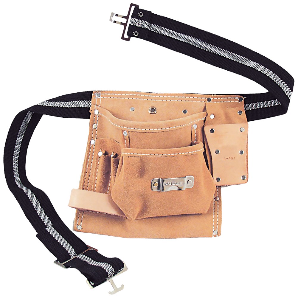 Deze professionele lederen Ironside gereedschapsgordel heeft 6 vakken waaronder een nagelzak en is voorzien van een nylon gordel